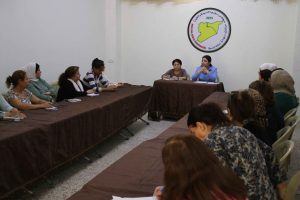 وبحث الاجتماع الدوري الذي حضره ممثلاتٌ عن الأحزاب السياسية ومؤسسات المجتمع المدني والفعاليات النسوية، الأوضاع السياسية الجارية على الساحة السورية والإقليمية والدولية وتبعاتها على الملف السوري.