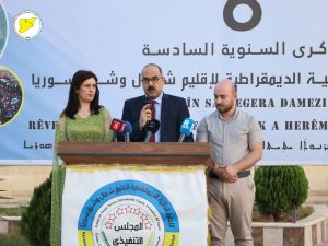 وأضافت: “إن هذا يضعنا أمام مسؤولية تاريخية وأخلاقية لحماية المكتسبات المتحققة وإفشال جميع المؤامرات التي تُحاك ضدنا من خلال التعاون والتكاتف، والأخذ بروح المسؤولية، والعمل على انجاز الحوكمة الرشيدة والتنمية المستدامة لتعميم هذه التجربة على كافة الجغرافيا السورية، وتحقيق الحوار السوري – السوري، مجسدين التمثيل الحقيقي لمبادئ الثورة السورية بكافة مكوناتها ومعتقداتها لإيصال سوريا إلى برّ الأمان”.