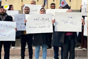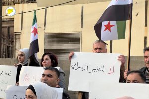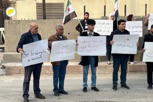 نظّم مجموعة من المواطنين السوريين من مختلف المدن السورية اليوم وقفة احتجاجية أمام مبنى مفوضية اللاجئين التابعة للأمم المتحدة في مدينة القامشلي، شمال وشرق سوريا، وأصدروا بياناً يركز على عدد من المطالب الرئيسية، التي تهدف لتحقيق أهداف الثورة السورية.
