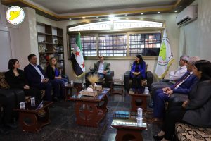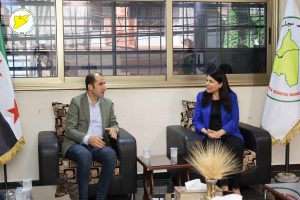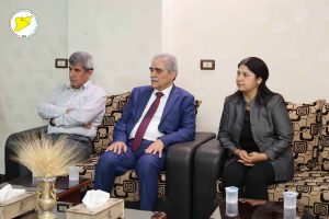 وكان في استقبال الوفد إلى جانب الرئيسة المشتركة لمسد، كل من الرئيس المشترك لمكتب العلاقات حسن محمد علي، عضوة الهيئة الرئاسية داليا حنان، والرئيس المشترك لمكتب العلاقات في مقاطعة الجزيرة حسين العزام.