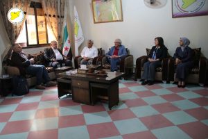 وكان في استقبال الوفد من جانب مجلس سوريا الديمقراطية كل من جيهان محمد، الإدارية في مركز حلب، وفاطمة الحسينو، الإدارية في مكتب العلاقات.