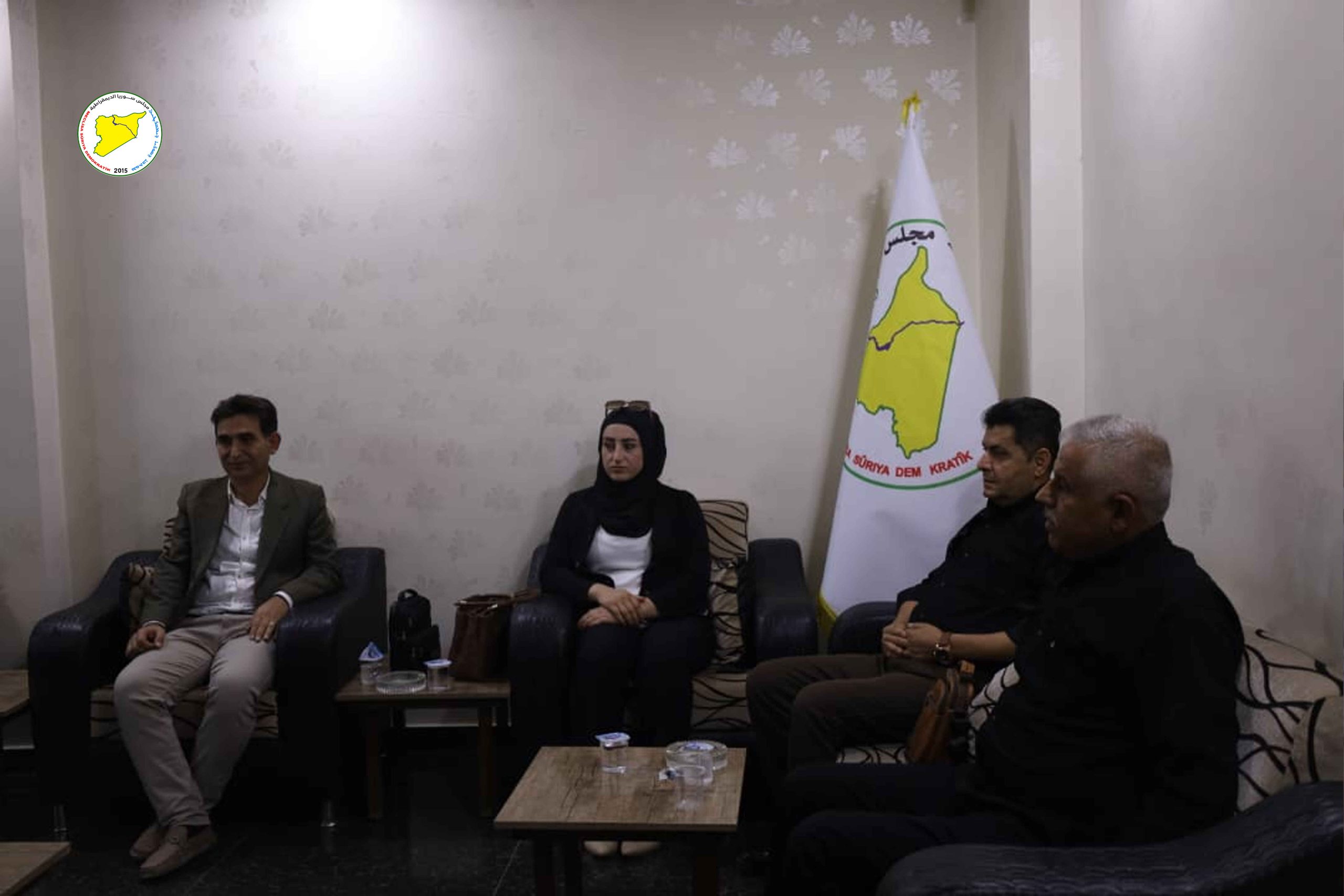 استقبل مكتب العلاقات بمجلس سوريا الديمقراطية في مكتبه بمدينة القامشلي اليوم وفداً من حزب التحالف الوطني الديمقراطي السوري، ضمّ كلاً من لازكين كور عضو المكتب السياسي ورئيس المكتب القانوني، وخليل رشو رئيس فرع عفرين – الشهباء للحزب، وياسر شيخو عضو اللجنة المركزية، وبثينة كالو عضو اللجنة الفرعية.