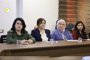 شارك وفدٌ من مكتب المرأة في مجلس سوريا الديمقراطية (مسد) في الندوة الحوارية التي نظمها مجلس المرأة العام في حزب سوريا المستقبل بالتنسيق مع مجلس المرأة السورية، تحت عنوان “نضال النساء السوريات وتجربة بناء السلام والمجتمع الديمقراطي في شمال وشرق سوريا”، وذلك في مقر مجلس المرأة السورية بمدينة الرقة.