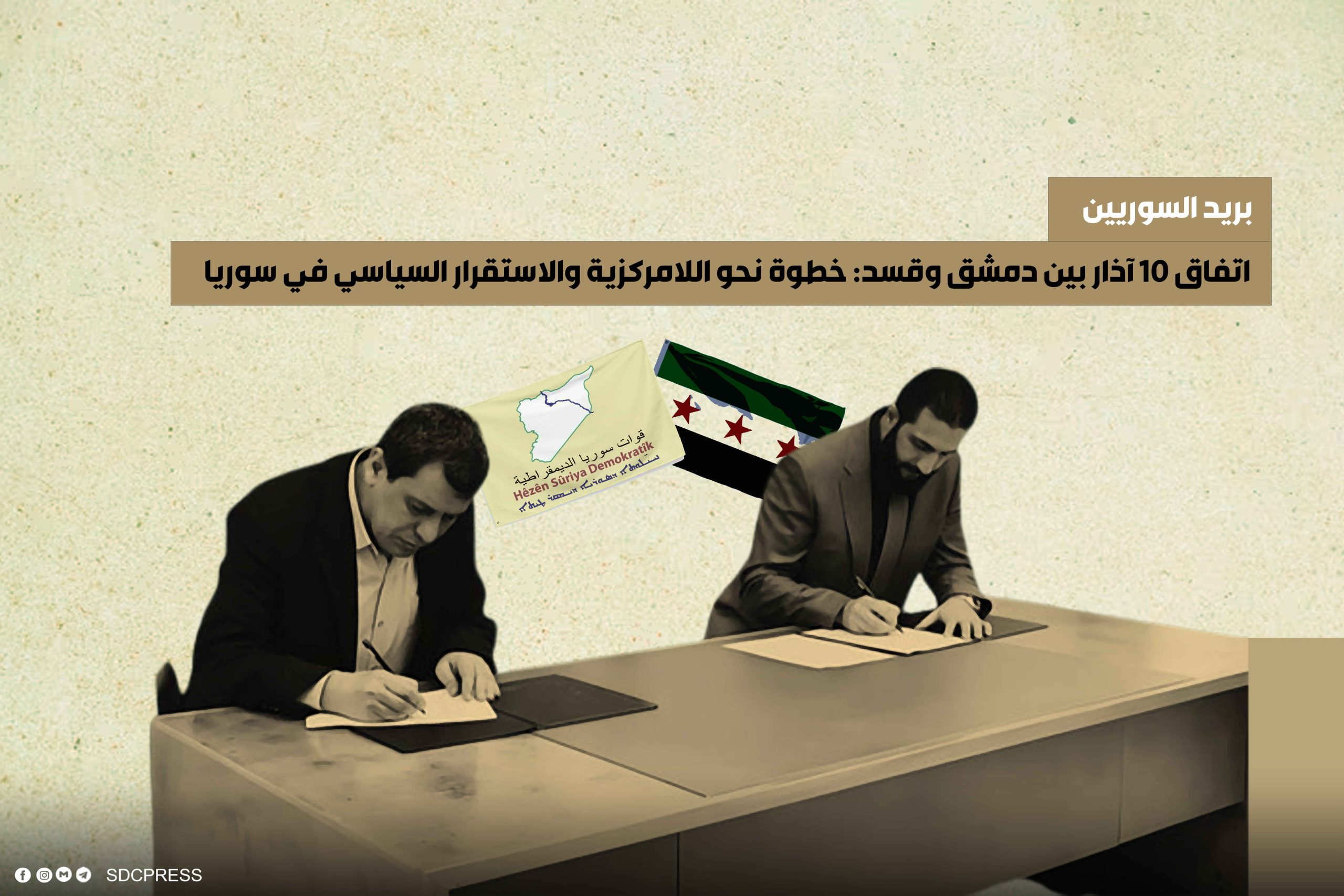 يشكّل اتفاق 10 آذار بين دمشق وقوات سوريا الديمقراطية محطة مفصلية في مسار الأزمة السورية، إذ يمثل محاولة لإعادة صياغة العلاقة بين المركز والأطراف على أسس جديدة من التفاهم والتعاون. لا يُنظر إلى الاتفاق بوصفه وثيقة قانونية فحسب، بل باعتباره تعبيراً عن إرادة سياسية تسعى لتجاوز الانقسامات وبناء شراكة قادرة على تحقيق استقرار سياسي وأمني مستدام.