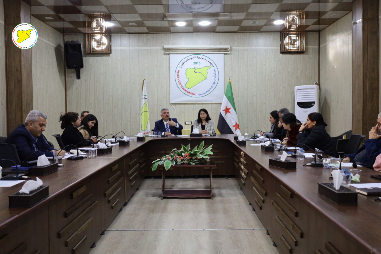 عقدت الهيئة الرئاسية في مجلس سوريا الديمقراطية اجتماعها الدوري في مقر المجلس، بحضور الرئاسة المشتركة؛ السيدة ليلى قره مان والدكتور محمود المسلط، لبحث آخر المستجدات الإقليمية والدولية وانعكاساتها على الملف السوري، إضافة إلى تقييم المشهد السياسي الداخلي ومسارات الحل الوطني خلال المرحلة المقبلة.