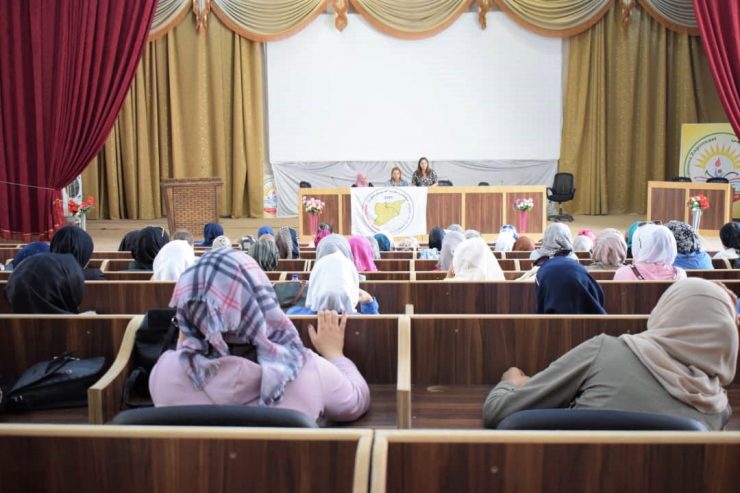On Saturday, September 14th, the Women’s Office of the Syrian Democratic Council organized a development lecture for members of women’s institutions in the city of Manbij with the objective of introducing empowerment and how to empower women politically and getting them out from pot of habits and traditions in order to grant them the leading role in society and decision-making positions. . The lecture was attended by dozens of members of women’s administrations and institutions in the city of Manbij and its affiliated committees with participation of the administrator in Women Office of SDC, Ilham Omar, and members of the Office : Zabbia al-Nasser, Amina Saleh, Newroz Ahmad and Najah Khalil. The lecture included important topics that will raise the level of awareness and development of women, the importance of empowering women, providing them with skills and abilities in order to make them play a prominent leading role in society. The most serious problems and sufferings that women currently face, which stand in the way of their progress, were discussed and appropriate solutions were suggested. Elham Omar talked about the reality of women and their representation in society. She also gave an overview of the role of women in society in past, the importance of women’s political empowerment and the obstacles to their participation. She also stressed on the necessity to overcome the habits and traditions that restrict women and prevent them from achieving their objectives. For her part, al-Nasser pointed to the need to increase the political, social and legal awareness of women through training courses, lectures, seminars and encourage women to join and interact with them to prove themselves more, to emphasize on their role within community and access to leadership positions. This lecture is part of a series of lectures held by the Women’s Office in North and East of Syria, which the office considers them as one of its priorities in order to enhance the role of women and empower them in political and social fields.