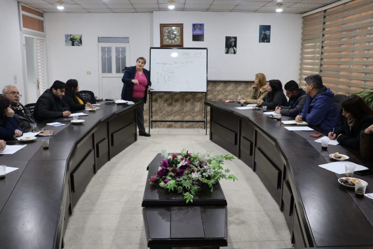 Upon the invitation of the Organization Office of the Syrian Democratic Council, the Deputy of Co- Presidency , Majdoulin Hassan, gave a lecture in the city of Qamishlo about the negotiating process and paths of solution in Syria according to international decisions, in presence of political parties, in addition to participation of women, the Co-presidency of SDC and the President of the Executive Committee . Hassan reviewed at the beginning of her lecture the history of the Syrian crisis, its causes, repercussions, and how it became internationalized in the international meetings and agreements that sought to resolve the Syrian crisis.
