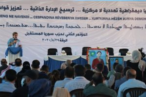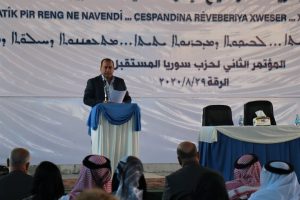 The conference activities began with reading the speech of the preparatory committee, and then several successive speeches were delivered, including the speech of “Abd Hamed Al-Mahbash,” the co-chair of the Autonomous Administration of north and east Syria, and the speeches of the Council of Families of Martyrs of the Future Syria Party, delivered by each of the mother of the martyr “Hevrin Khalaf”, the former Secretary-General of the party, who was assassinated by the Turkish occupation factions in October last year and the colleague of the martyr Marwan Al-Fetih, a member of the General Council in Deir Ezzor, and a speech on behalf of the family of the martyr Omar Alloush. The head of the Future Syria Party, Ibrahim Al-Qaftan, gave a political speech, followed by reading the political report of the General Council of the party.