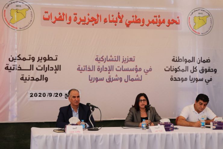 The co-chair, Amina Omar, concluded her speech by shedding light on the memorandum of understanding signed by SDC with the Popular Will Party in the Russian capital, Moscow, and said that this memorandum is the fruit of meetings and consultations, and that they are open-minded to similar steps with all the Syrian parties that we intersect with in protecting our country, Syria, and the future of its people.
