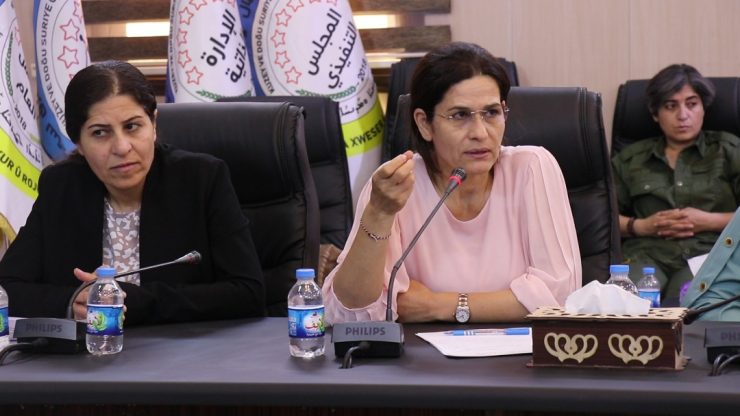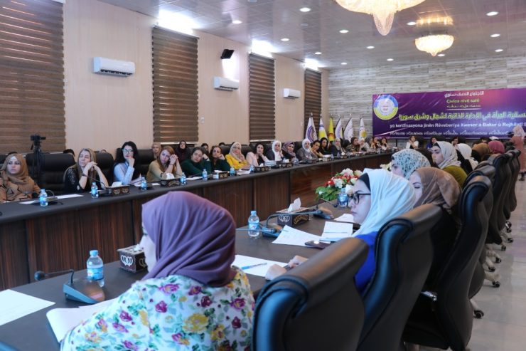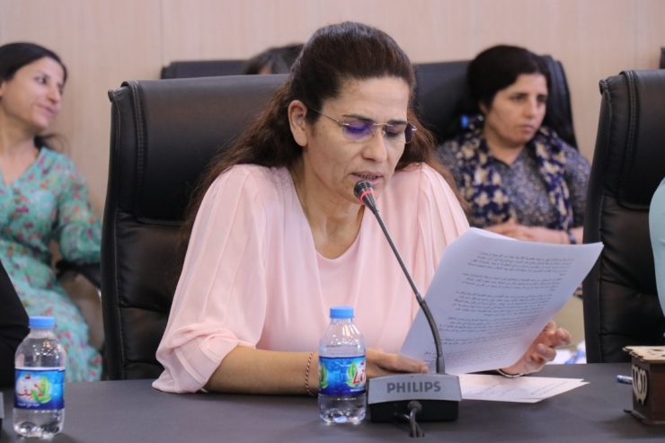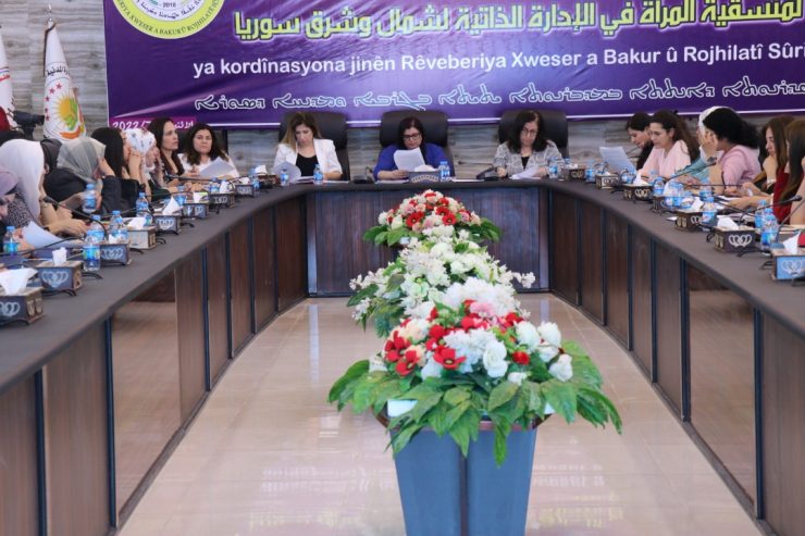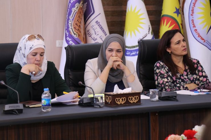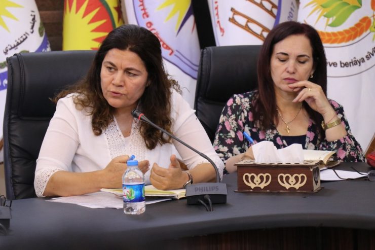 These statements came during the semi-annual meeting of the Women’s Coordinating of the Autonomous Administration of northern and eastern Syria on Monday in the presence of women from the Co-Presidency of the Executive Council, the general council, autonomous and civil administrations, institutions and parties in the meeting room of the Autonomous Administration building.