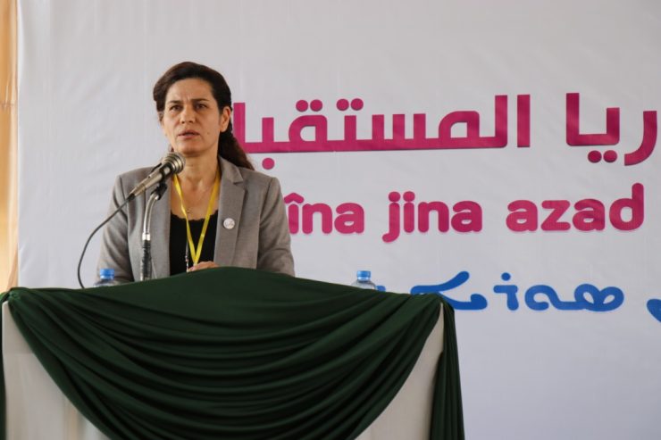 These declarations came during a speech delivered by Ilham Ahmed during the work of the second conference of the General Women’s Council of the Future Syria Party, which was under the slogan “By the will of free organized women, we build the future Syria” in the presence of hundreds of female party members, female guests, female representatives of political parties, Autonomous Administration and local civil and military institutions on Sunday in one of the halls of Raqqa city.