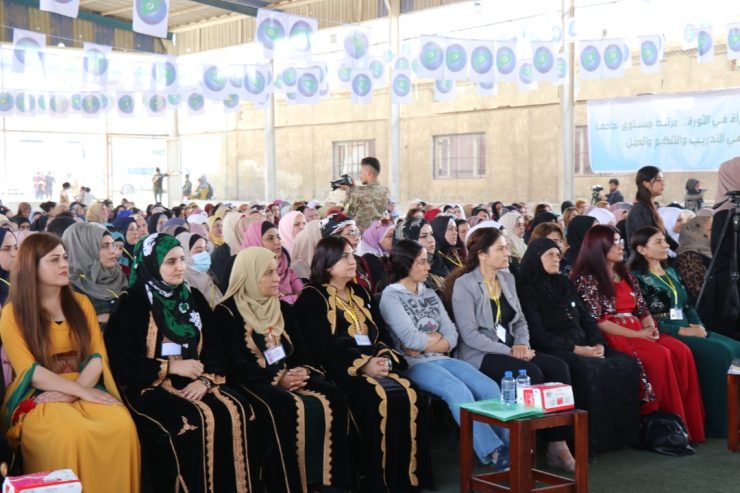 At the end of her speech, Ilham Ahmed recalled the martyrs who sacrificed their lives for the sake of women’s participation in the political arena, such as Saada and Hind, headed by havrin Khalaf, the Secretary General of the Future Syria Party, and finally she thanked the activity of the General Women’s Council of the party and wished them success.