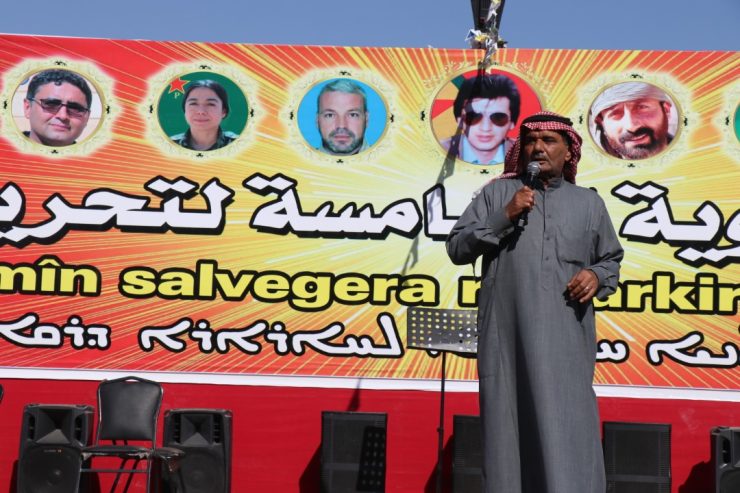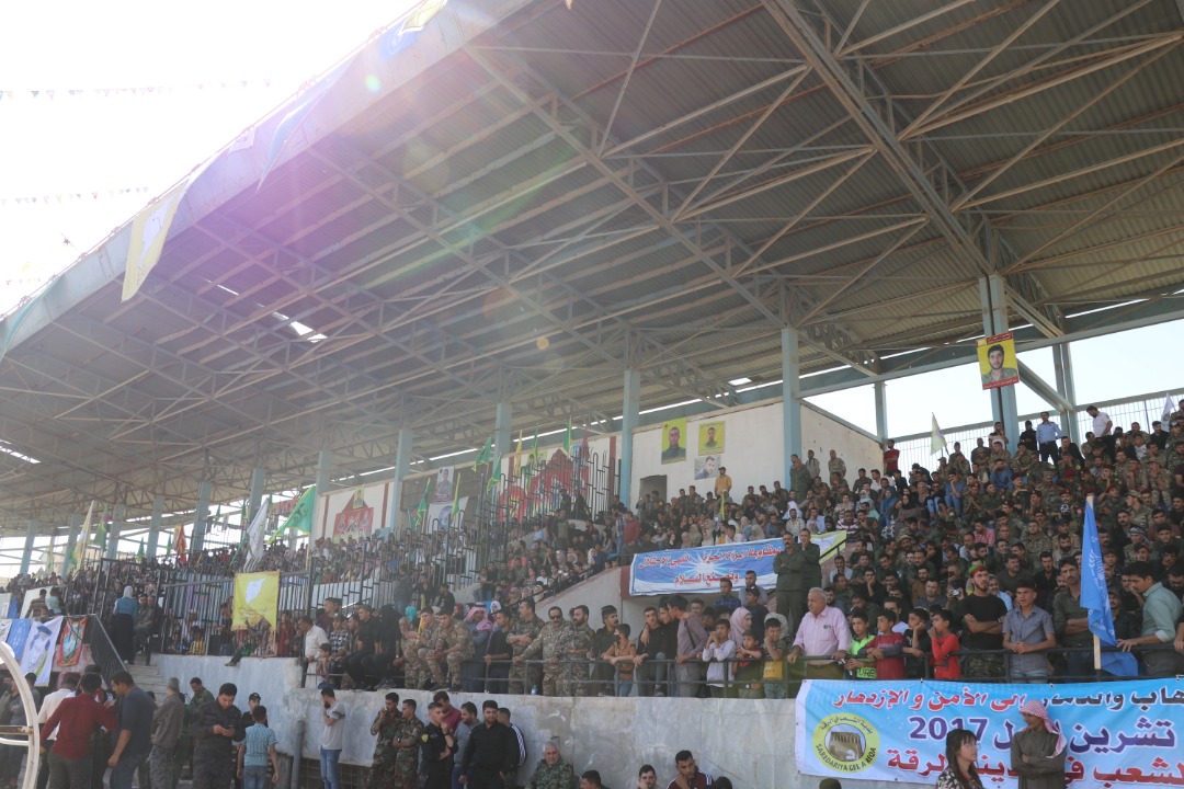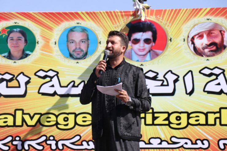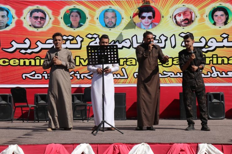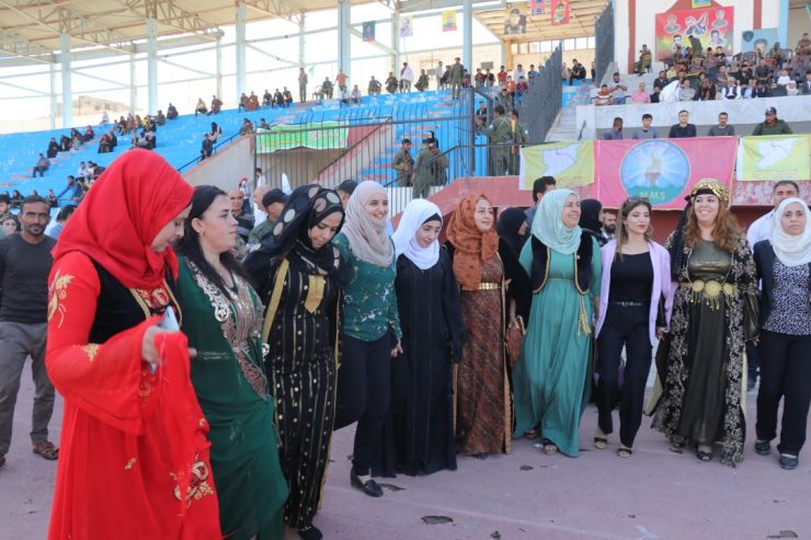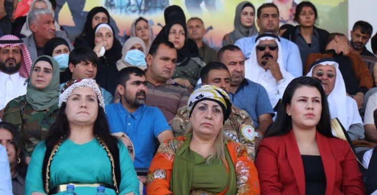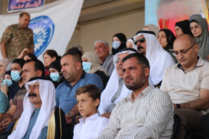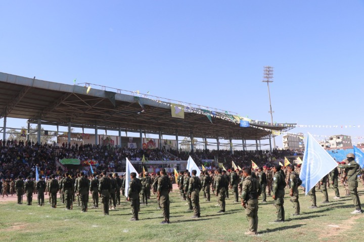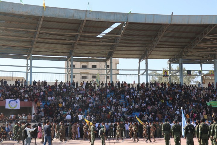 The celebration was organized by the democratic civil administration in Raqqa, which was held on Thursday and was attended by delegations from councils, institutions, the Autonomous Administration, representatives of political parties and powers, notables and tribal elders, in addition to a mass crowd of people and residents of Raqqa city and its countryside, and delegations from all regions of northern and eastern Syria, at the Municipal Stadium in the center of the city.