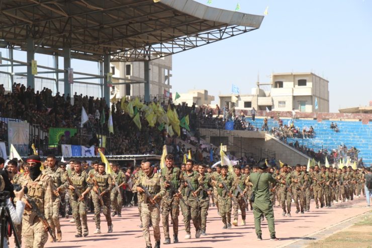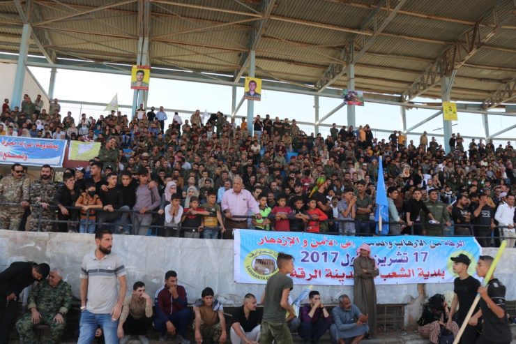 The celebration was begun with a solemn military parade presented by an elite of the Syrian Democratic Forces, Women’s Protection Units and Internal Security Forces, followed by many speeches by the Raqqa Civil Council, the Syrian Democratic Forces and the Women’s Protection Units.