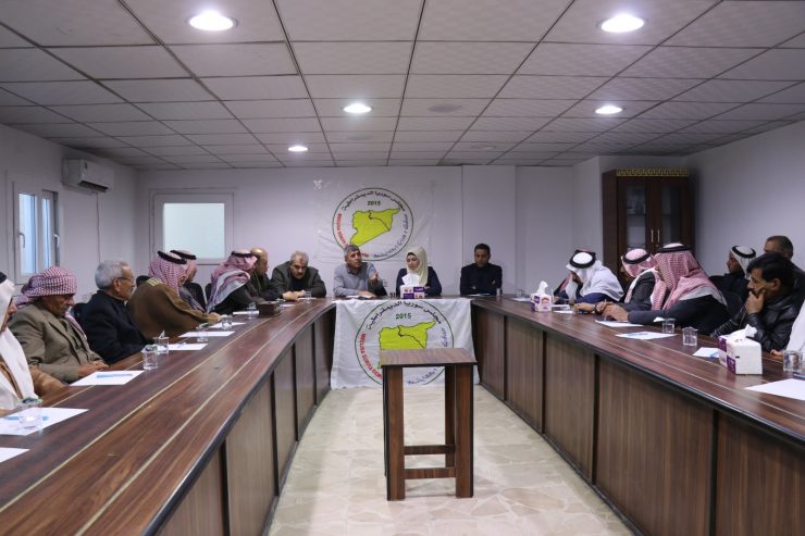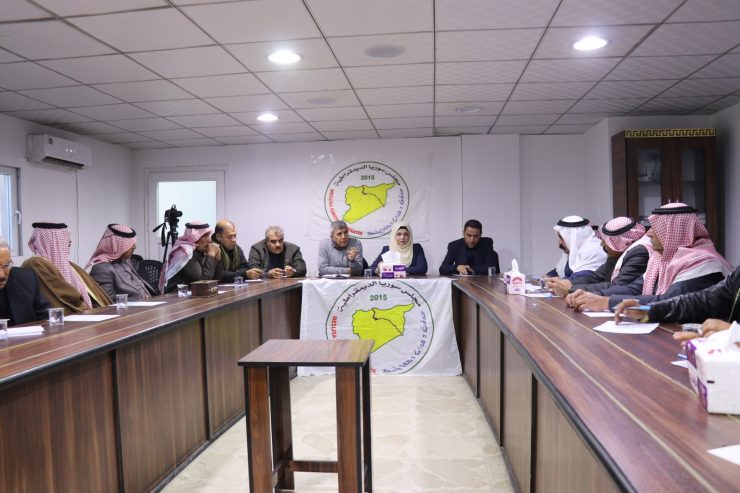 The sheikhs and dignitaries of the tribes and notables of Manbij discussed with the members of the Bureau ways to reach the required societal cohesion, as the organizers of the meeting explained its importance in the stability of the region and how to expand the Syrian national framework for the project led by the Syrian Democratic Council in cooperation with the clans and to formulate a tribal opinion that deters any external ambitions.