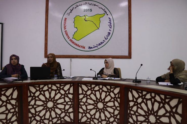 The dialogue session was organized by the Women’s Bureau of the Syrian Democratic Council, and members, administrators of the countryside and committees of the city of Raqqa working in the gathering were invited to it.