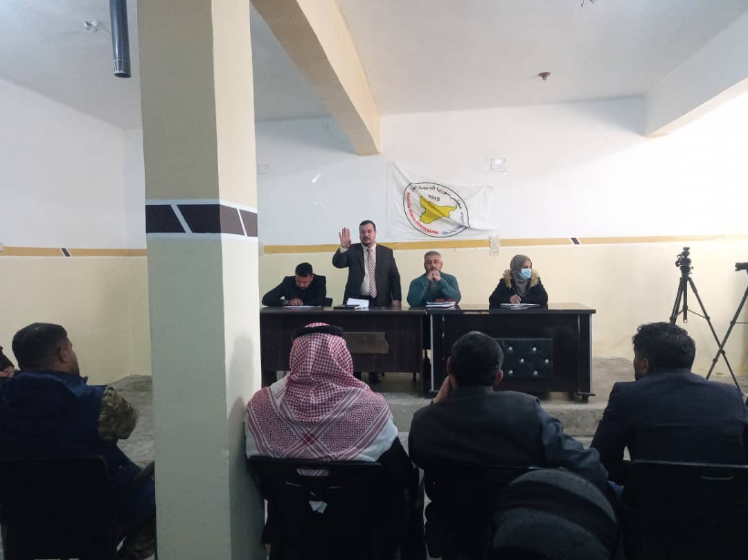 The seminar was attended by intellectuals, politicians, independent activists, as well as female figures, tribal leaders, and representatives of civilian and military institutions in the eastern countryside of Deir ez-Zor within the town of Hajin.