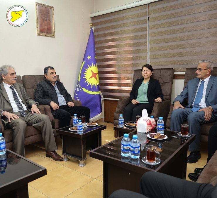 A delegation of the Syrian Democratic Council (SDC) visited on Thursday, March 14, the Syriac Union Party at the party’s headquarters in Qamishli city. The purpose of the visit was to congratulate the party on the occasion of holding the Party’s Fourth Conference.