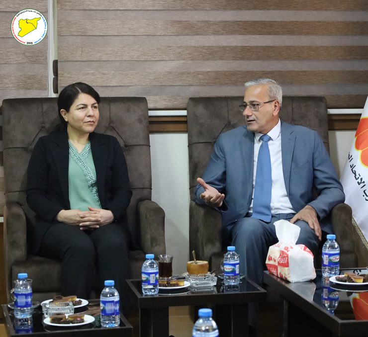The SDC delegation included Layla Qaraman, Co-chairwoman of the SDC, Ali Rahmoun, Deputy Co-chairs, and Hussein Azam, a member of the SDC’s Relations Office.