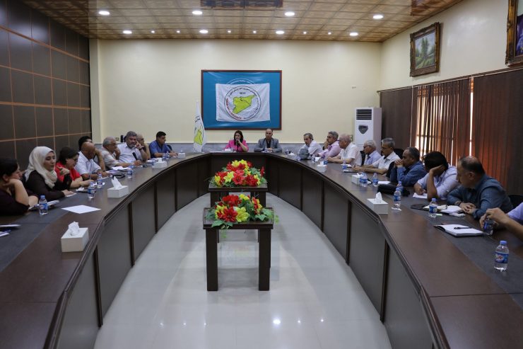 The meeting was attended by the Co-Chair of the Syrian Democratic Council, Amina Omar, in addition to the Co-Chairs of SDC Offices.