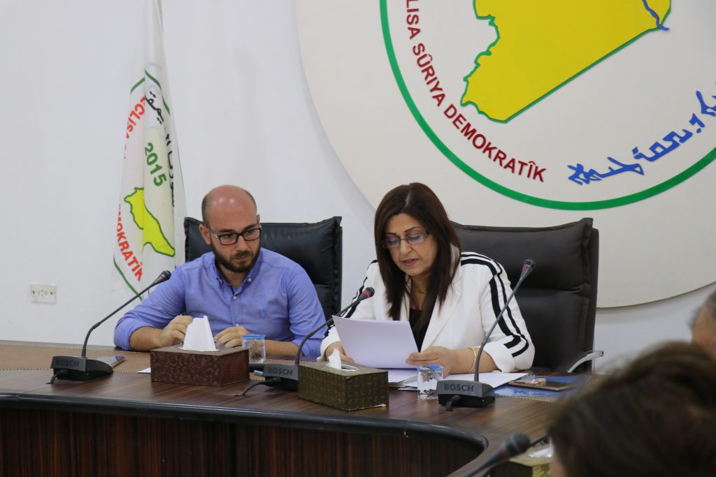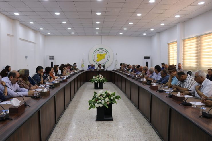 The meeting concluded with reading of the monthly report of Executive Council and General Council of Self-Administration of North and East Syria, read by the Co-Chair of Executive Council, Abd Hamid al-Mahbash, and the Co- Chair of General Council, Fareed Ate.