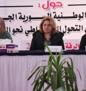 Îro Şemiyê, komek ji jinên Sûriyê di civîna diyalogê de ku ji aliyê Yekîtiya Rewşenbîrên Reqayê ve û di bin sîwana Sûriya Demokratîk de hat lidarxistin de, têgeha nasnameya niştimanî ya berfireh weke yek ji riyên...