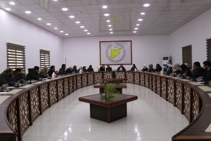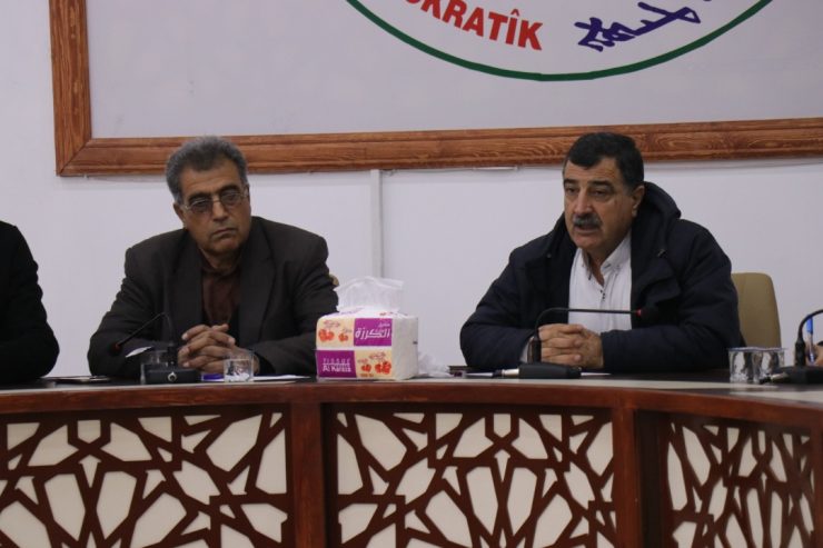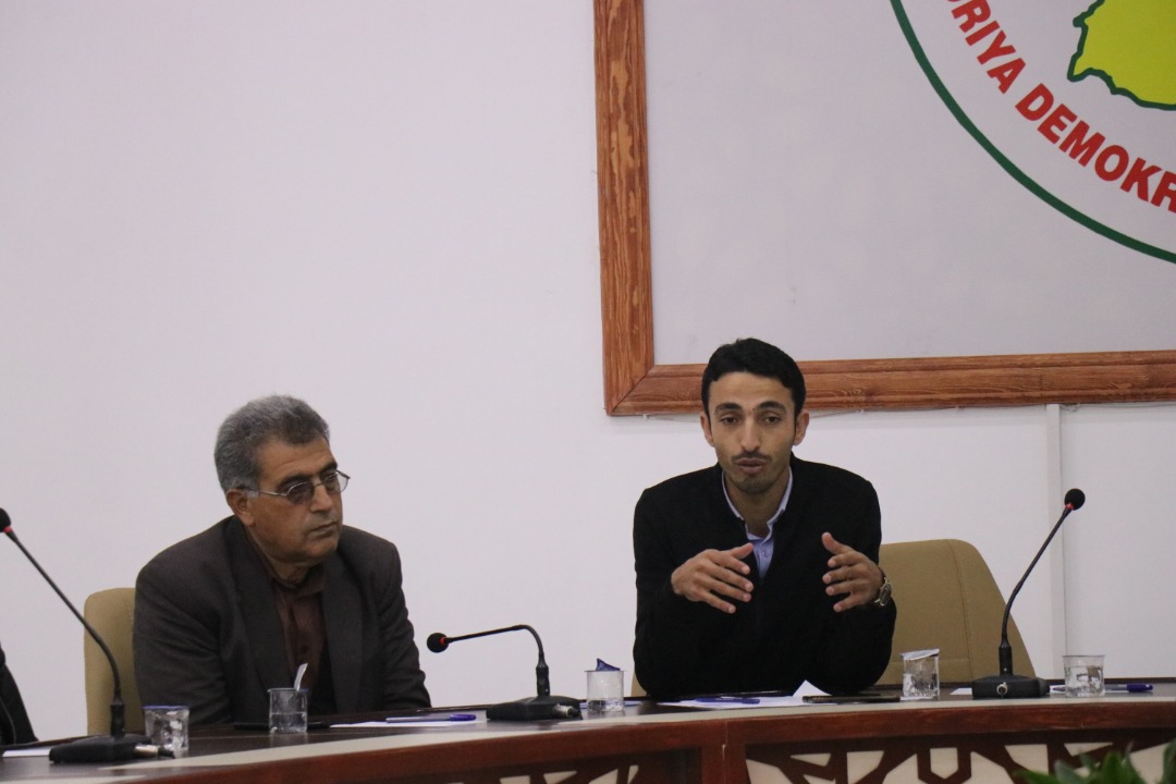Roja Çarşemê, MSD bi komek ji kesên eleqedar bi karûbarên giştî li Reqqayê re, encam û bandorên nêzîkbûna “Enqere û Şamê” li ser Pirsgirêka Sûriyê û penaberên Sûriyê, li salona civînên Meclisa Sûriya Demokratîk li Reqayê.