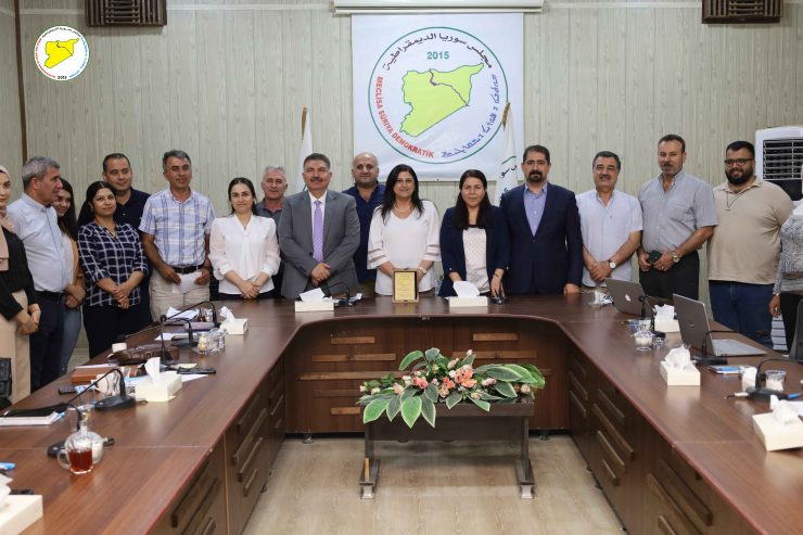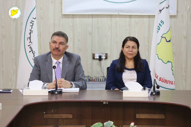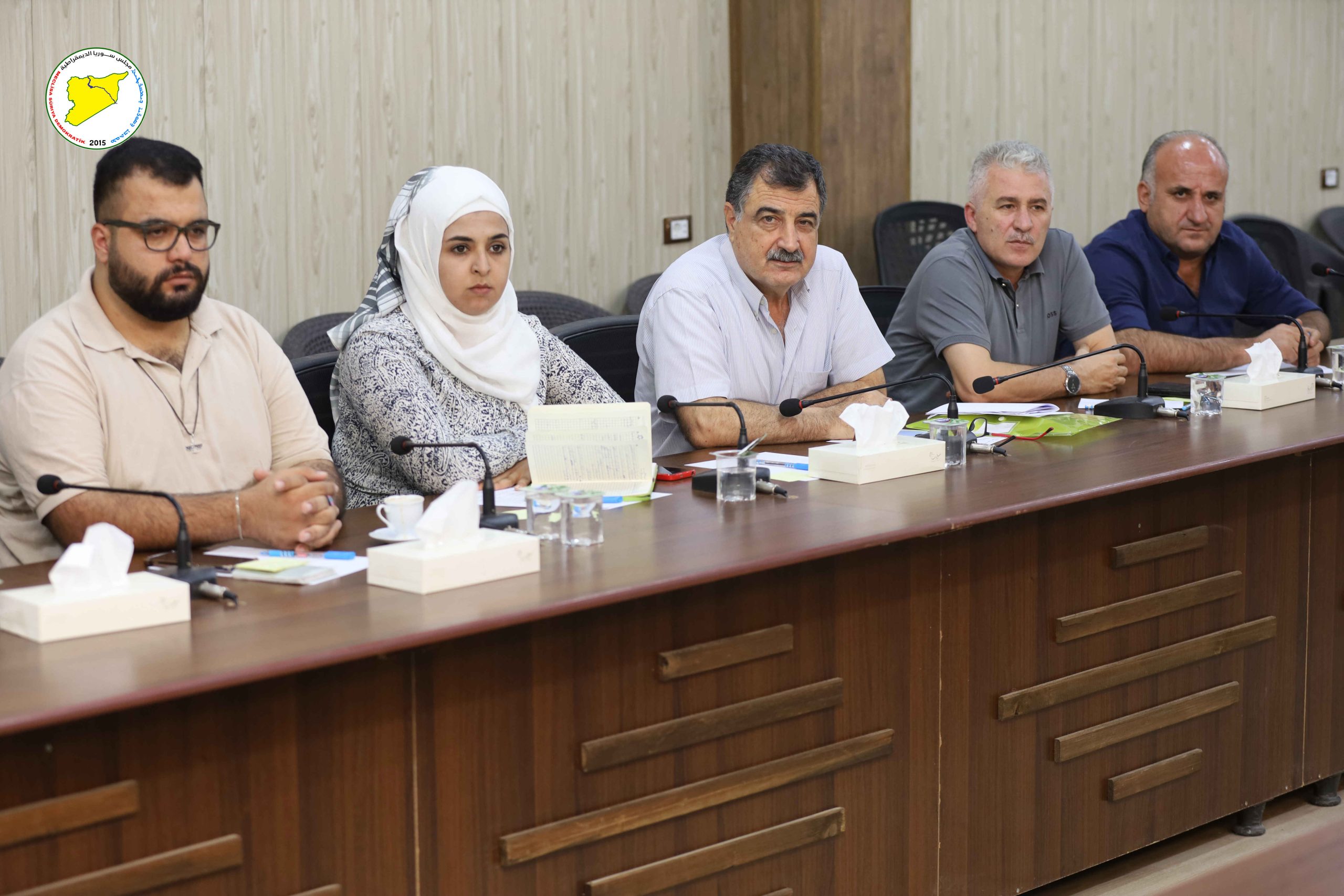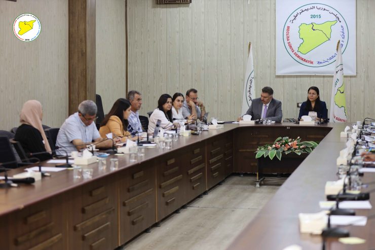 Desteya Serokatiya Meclisa Sûriya Demokratîk (MSD) bi amadebûna hevserokatiya meclîsê birêz Leyla Qereman û birêz Mehmûd El-Mislêt, her wiha cîgirên hevserokatiyê û hevserok ên nivîsgehên meclîsê civiya.